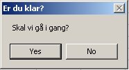 Det giver jo ikke meget mening at sætte knapper på sådan en MsgBox, hvis vi ikke kan finde ud af, hvilken af de to knapper brugeren har trykket på. Vil man have resultater ud af en MsgBox ser det sådan her ud: