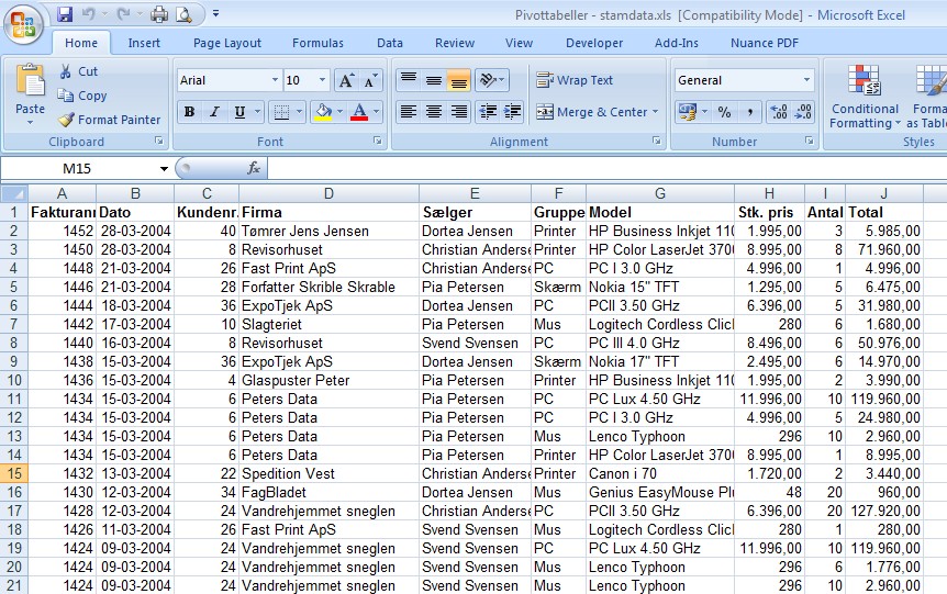 Vi arbejder med udgangspunkt i samme datasæt som Excel VBA kurset: