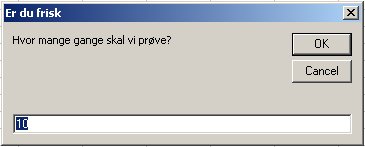 Bemærk, at der her altid skal være parenteser - det er jo ikke specielt smart at lave en inputbox, hvis man ikke bruger resultatet til noget.