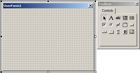For at oprette en userform skal du skifte til VBA editoren, højreklikke på VBAProject og vælge Insert | Userform. Så kommer det til at se sådan her ud i højre side af editoren